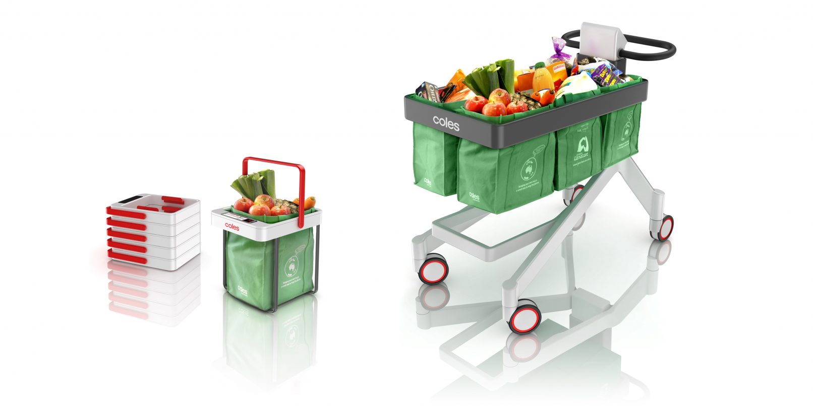 As part of the project, Blue Sky designed a smart trolley. The trolley structure is a lightweight composite frame on which you hang your shopping bags. A next generation basket was also designed and is a light weight frame structure that enables a customer to pack products directly into his or her own bag and neatly folds and stacks for charging at night.